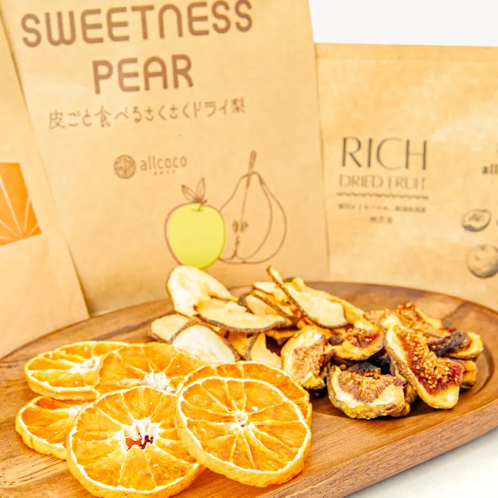 砂糖やシロップに漬けた海外産のドライフルーツが市場の大多数を占める中、オルココがこだわるのは国産素材、砂糖・添加物不使用の健康的なドライフルーツです。