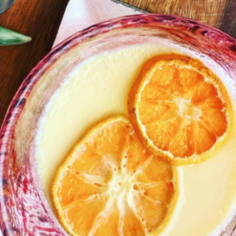 みかんチップスをヨーグルトに浸し、一晩寝かせます。ミントなどを添えると爽やかに。
